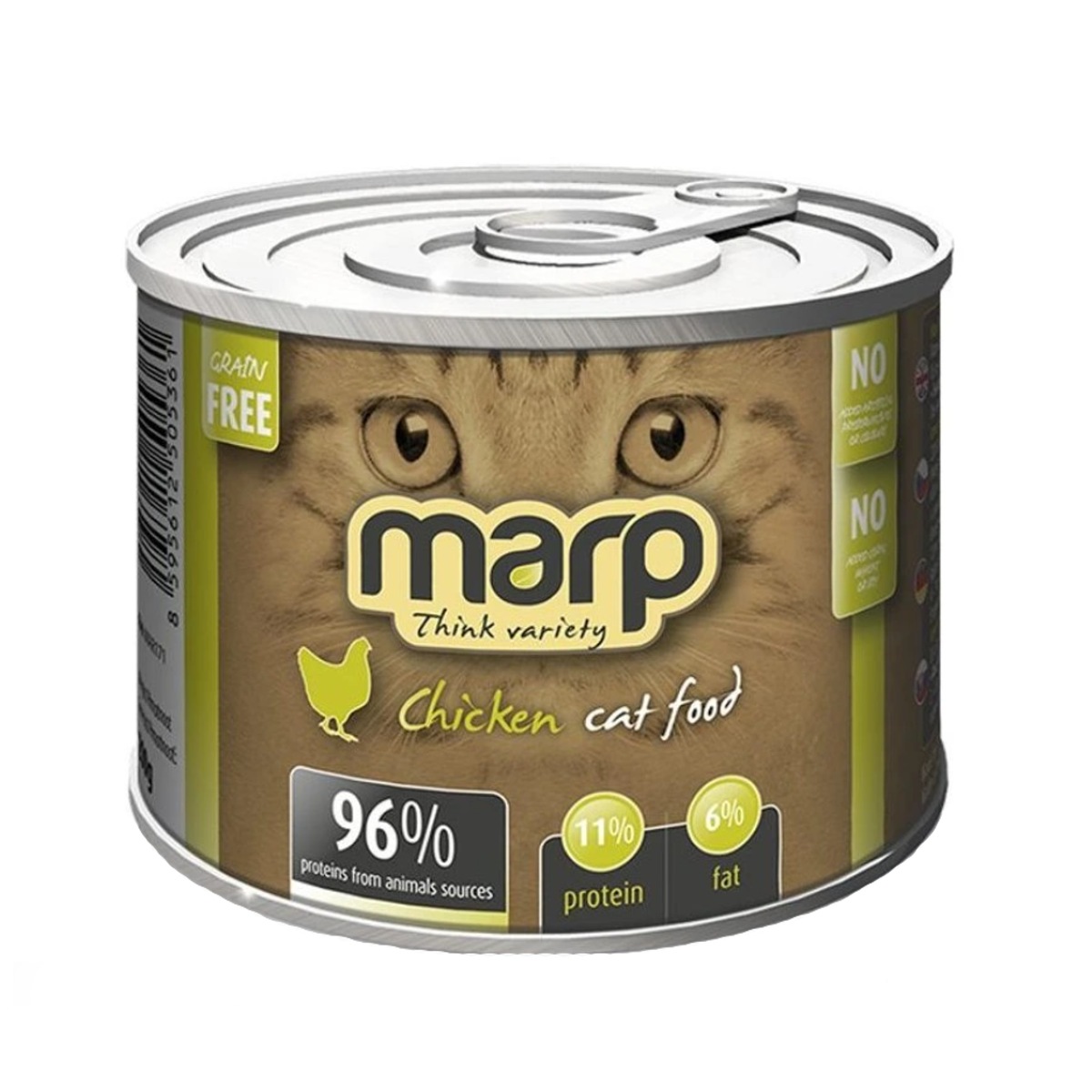 Konzerva se dvěma druhy masa, vhodná pro koťata a dospělé kočky všech plemen. Hledáte konzervu pro vaší kočku, která bude skutečně kvalitní? Konzervy Marp Variety obsahují špičkové suroviny a jsou bez jakýchkoliv obilovin. Obsahují 96% bílkovin ze živočišných zdrojů, což je zařadí mezi top produkty na trhu. A jak je typické pro všechny produkty Marp, jsou bez jakýchkoliv umělých konzervantů nebo dochucovadel.