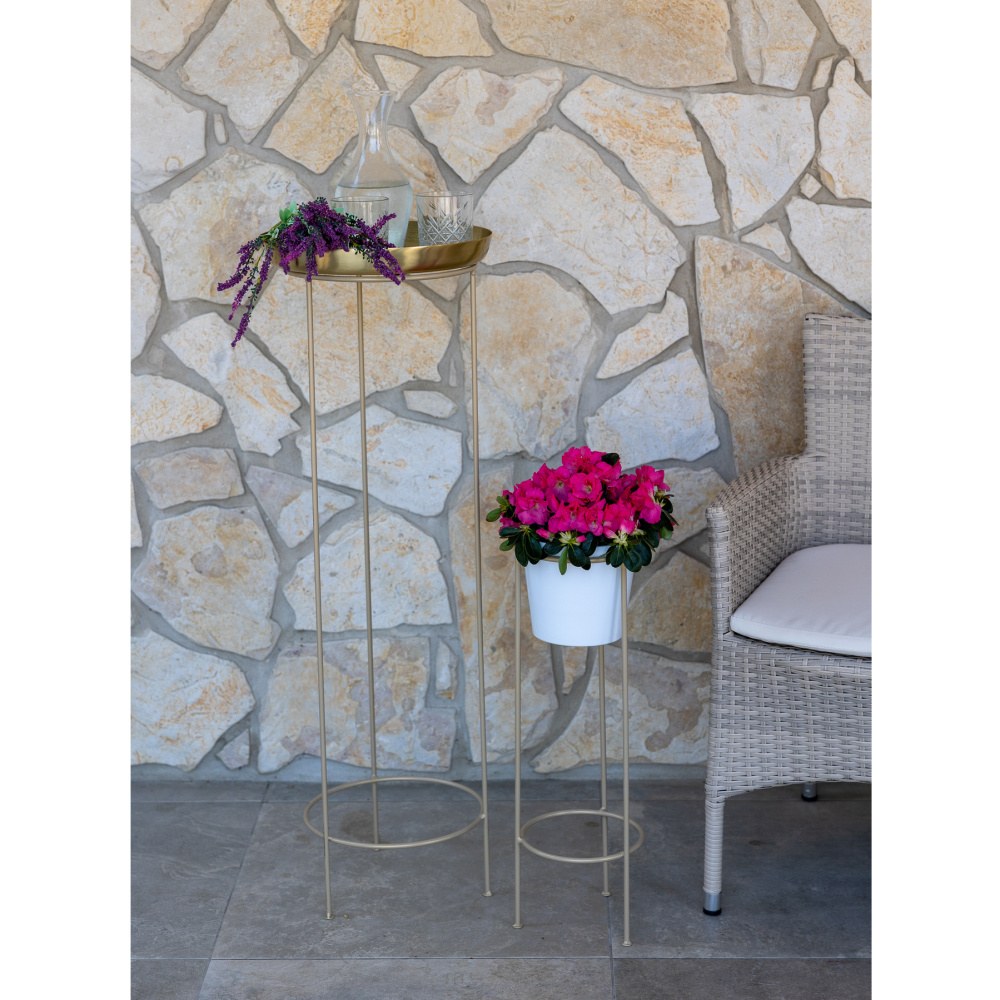 Jednoduchý kovový stojan na květináč, který vkusně doplní vaši terasu či vchod do domu.Úprava materiálu: před lakováním povrchu probíhá tryskání ocelových broků a automatické odmaštění/fosfátování, poté lakování v práškové lakovně a následně vypalování při cca 200 °C po dobu cca 20 minut. Výsledkem je hladká, antikorozní barva a celoroční užívání na zahradě.