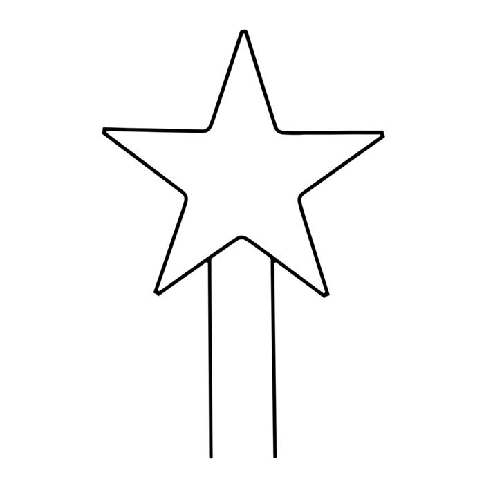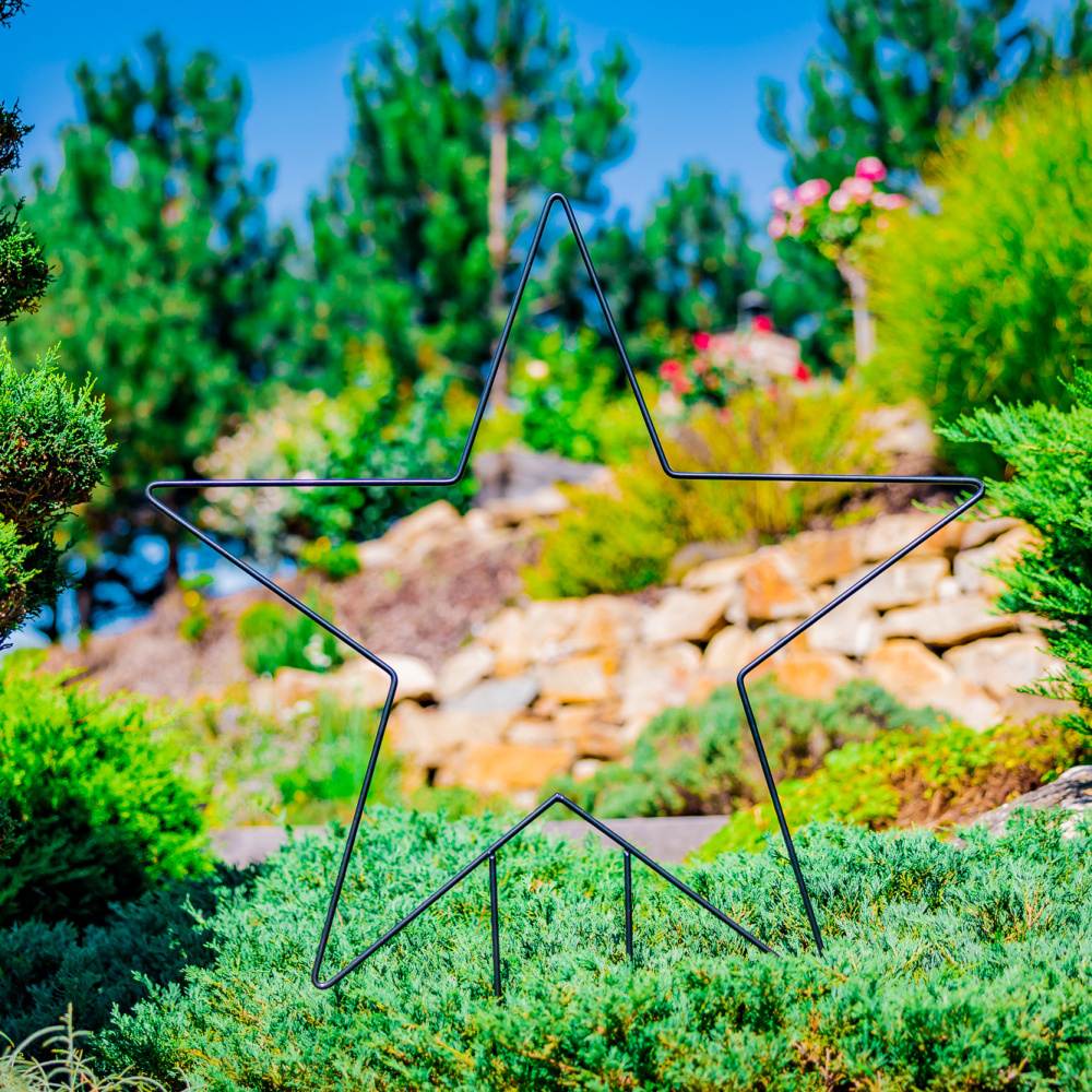 Kovová dekorace ve tvaru hvězdy. Úprava materiálu: před lakováním povrchu probíhá tryskání ocelových broků a automatické odmaštění/fosfátování, poté lakování v práškové lakovně a následně vypalování při cca 200 °C po dobu cca 20 minut. Výsledkem je hladká, antikorozní barva a celoroční užívání na zahradě.