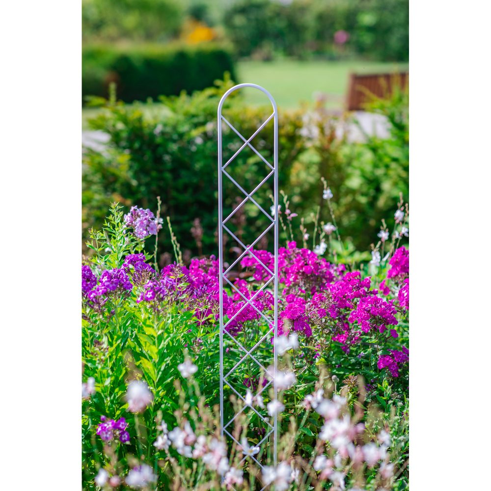 Pevná kovová opora odolná korozi a změnám počasí. Úprava materiálu: před lakováním povrchu probíhá tryskání ocelových broků a automatické odmaštění/fosfátování, poté lakování v práškové lakovně a následně vypalování při cca 200 °C po dobu cca 20 minut. Výsledkem je hladká, antikorozní barva a celoroční užívání na zahradě.